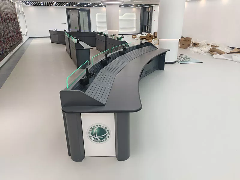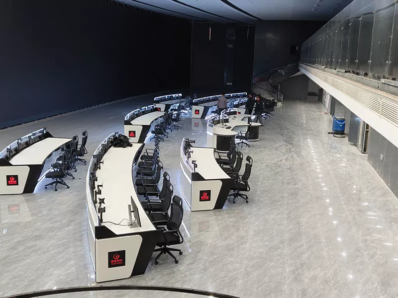 1. Ергономски закривљени дизајн за лакши рад: Закривљена плоча стола је у складу са визуелним и оперативним током, омогућавајући оператерима да лако надгледају више екрана без честог окретања, значајно смањујући замор врата, рамена и леђа од дугих смена и побољшавајући ефикасност праћења.